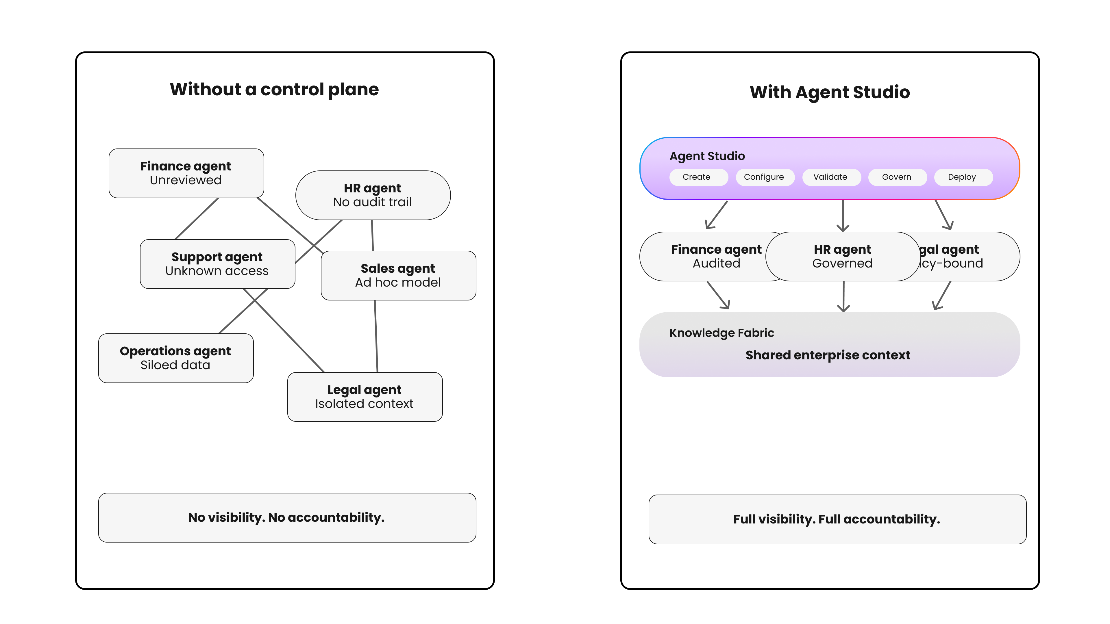 Each agent brings its own data dependencies, integration requirements, failure modes, and governance considerations. Without a unified way to manage them, organizations end up with what is increasingly being called agent sprawl: dozens of agents running across the business with no centralized visibility, inconsistent governance, and no clear chain of accountability when something goes wrong.